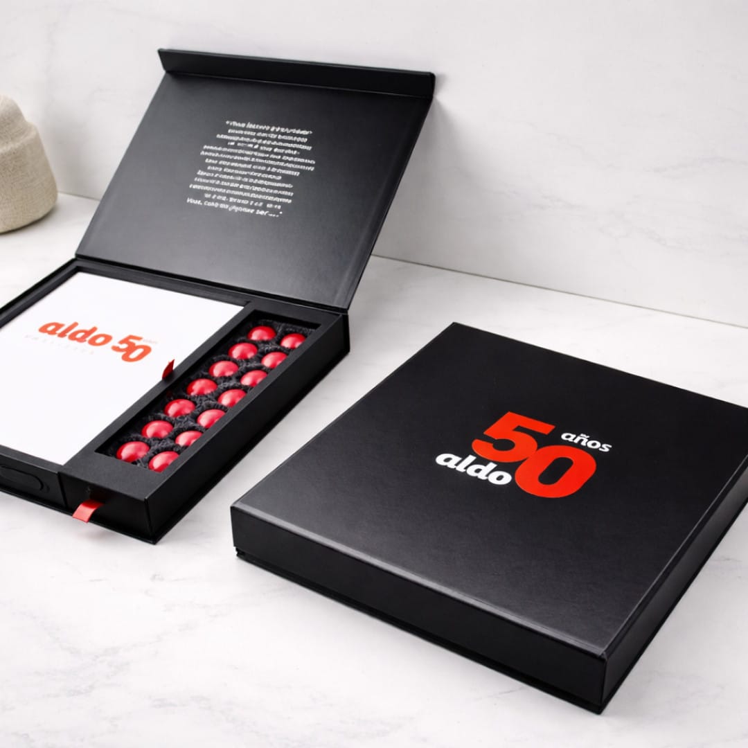 Fabricada en cartón de alta calidad, esta caja rígida combina estructura, estética y funcionalidad en cada detalle. Ofrece múltiples opciones de personalización, incluyendo impresión full color, laminados, stamping y cierres magnéticos, que aportan una experiencia de apertura cuidada y memorable.