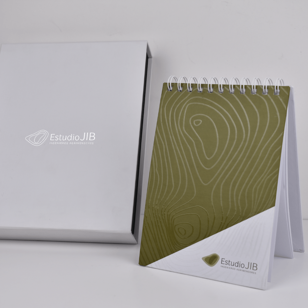 Regalo empresarial premium, caja con stamping, mas libreta e impresión en bolígrafo.