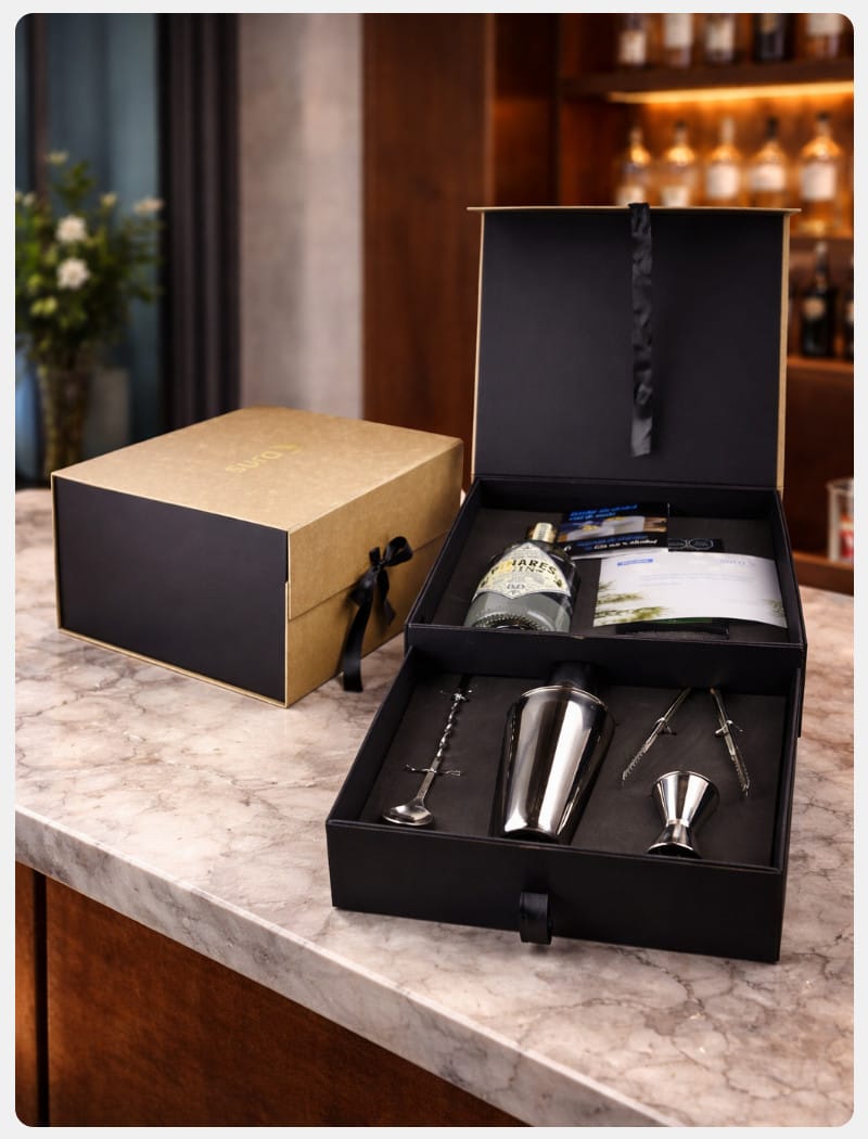 Cada elemento es pensado para integrarse a la experiencia de marca, desde la presentación hasta el uso cotidiano, reforzando la percepción de valor en cada interacción.